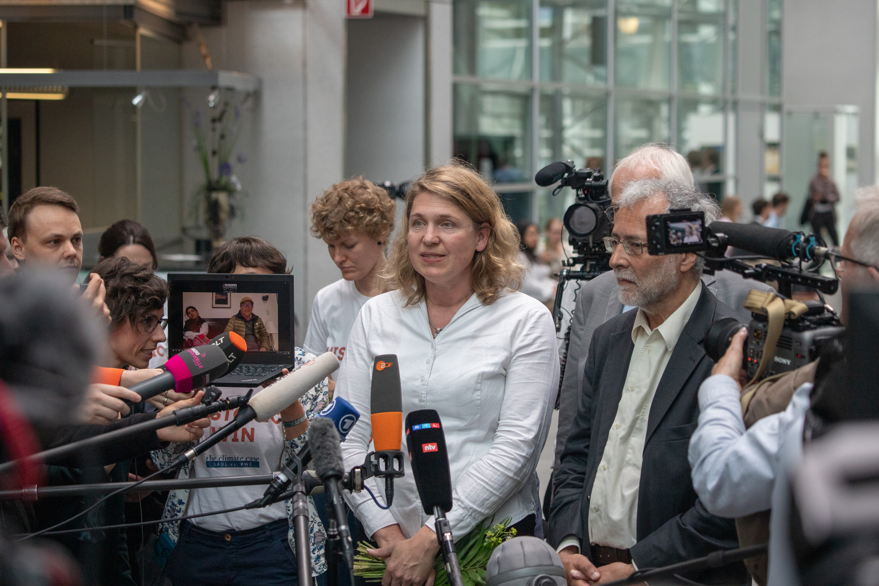 Roda Verheyen gibt ein Pressestatement nach der Urteilsverkündung