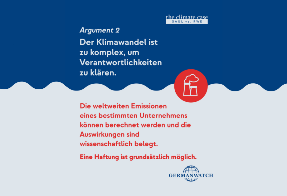 Schon eine unabhängige wissenschaftliche Untersuchung von Forschern der Universitäten Oxford und Washington kommt zu klarem Ergebnis: Erwärmung, die in der Region oberhalb von Huaraz Gletscherschmelze verursacht, ist zu mehr als 85 Prozent auf Emissionen durch Menschen zurückzuführen. Es sei sogar zu mehr als 99 Prozent sicher, dass sich der Rückzug des Gletschers, der zu dem Flutrisiko am dortigen Gletschersee führt, nicht allein mit natürlichen Veränderungen erklären lasse.