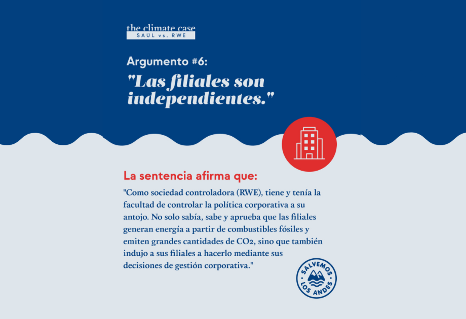 Es la primera vez que una corte reconoce que una empresa privada es el responsable principal por su aporte en los daños producidos por del cambio climático. Esto aplica si los daños concretos o riesgos hacia las personas privadas o su propiedad puedan ser parcialmente atribuidas a las actividades de lempresa relevante.